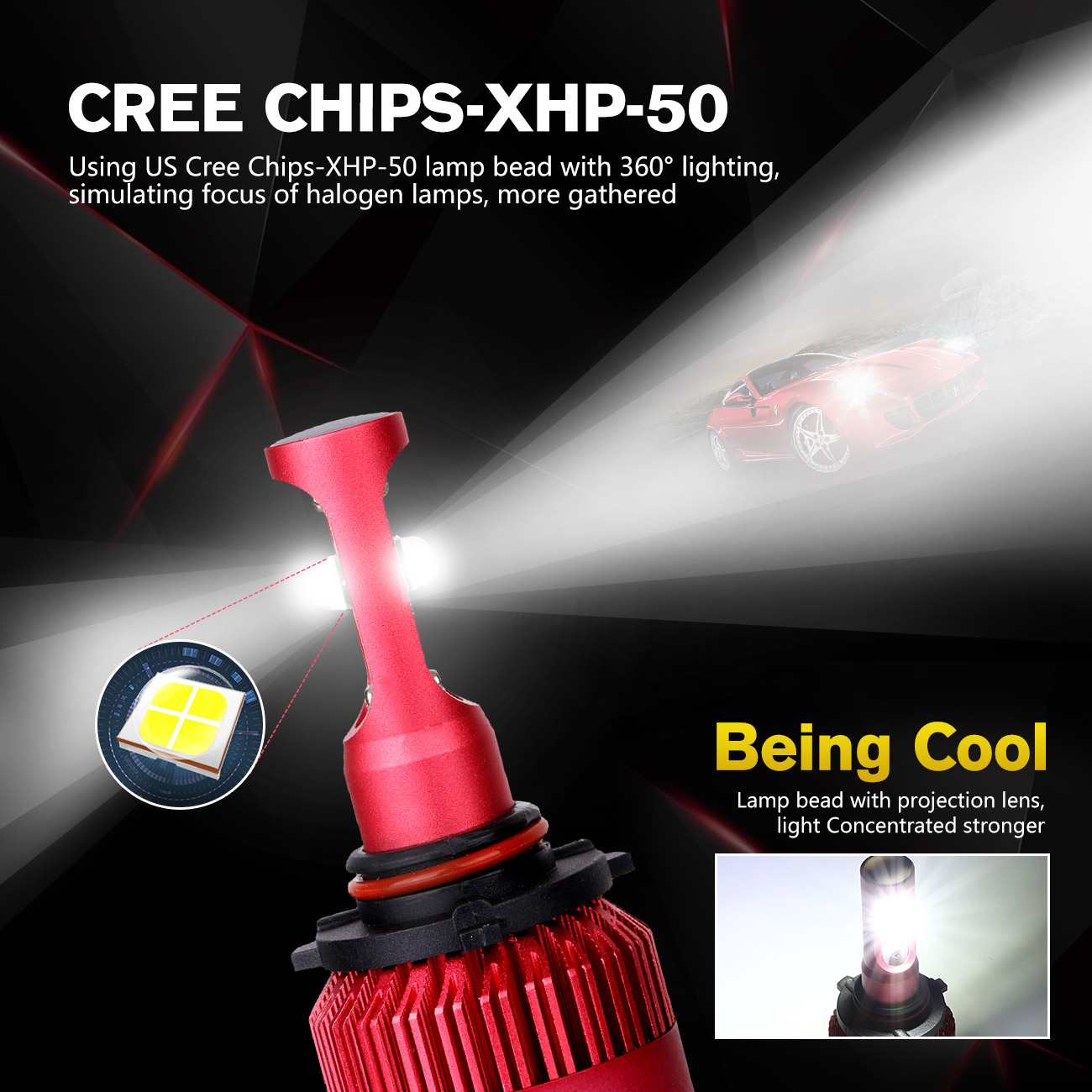 Beamtop 9005 (HB3) LED Headlight Bulbs Conversion Kit G9 Series Single Beam 80W 9600lm 6500K CREE Chip